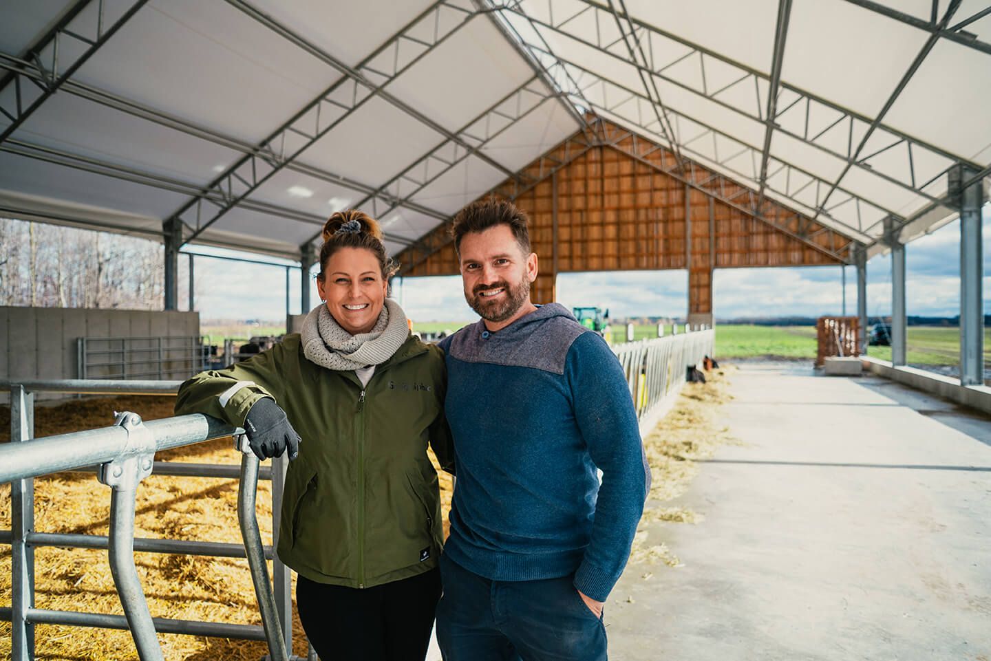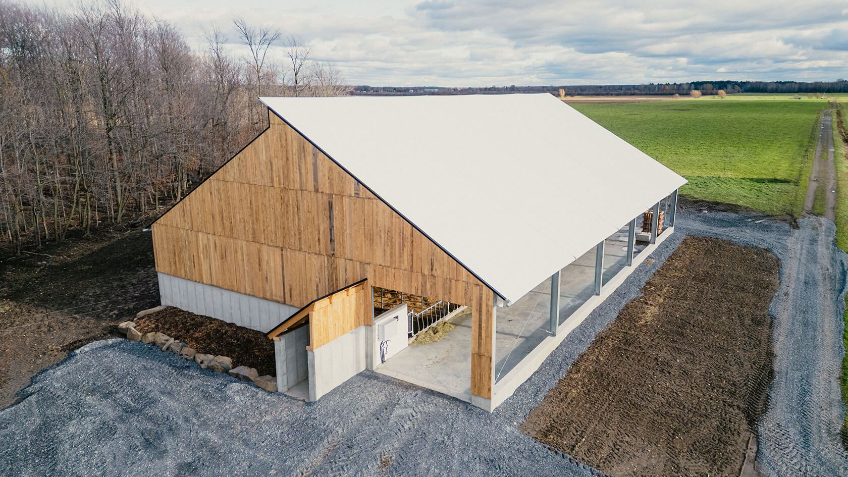 To support their growth and improve winter management, Ferme BROVIN recently installed a brand new covered feeding area, a 60-foot-wide Britespan Epic Overshot dome, the first of its kind assembled in Quebec in October 2025. Their goal was clear: to offer their animals a healthier, more functional environment during the winter months while facilitating the essential veterinary procedures performed on the herd. This new model stands out for its polyethylene fabric covering, which lets in abundant natural light without requiring any electricity. Quick to assemble and robust, the structure blends harmoniously into the farm landscape and meets all their expectations. For Caroline and Vincent, it is a solution perfectly suited to their reality: versatile, accessible facilities designed for both animal well-being and everyday efficiency.
