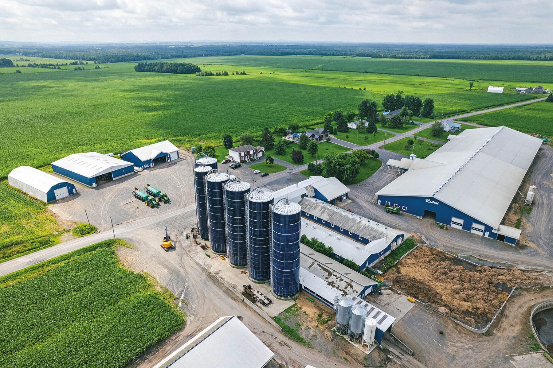 Sylvain Landry works with his sons, equipment manager Frédéric and herd manager Nicolas, who make up the farm’s third generation. The enterprising trio owns 1,500 heads of cattle, including 850 dairy cows—of which 750 are lactating. They also grow 3,300 acres of corn, soy and oats.