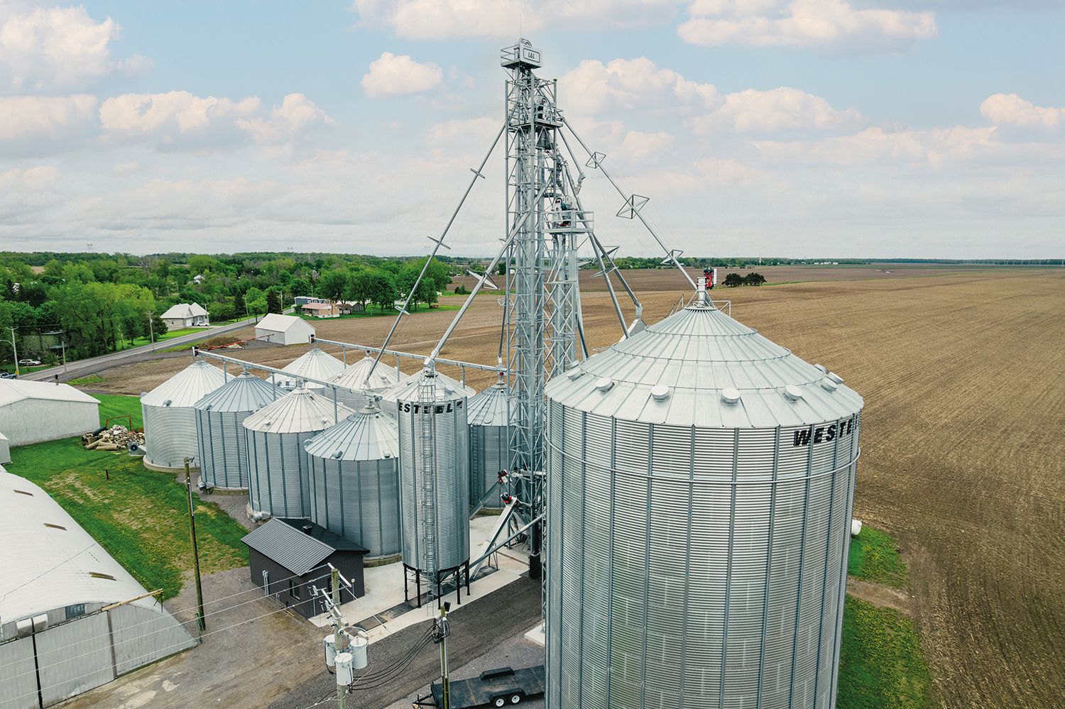 So, Les Fermes J.P. Laberge Inc. reached out to L&L to install two Westeel grain bins (1,750 and 200 tons), one Sukup Mixed-Flow 32’ dryer with 14” columns and a 40 ton/h capacity, two RAD grain elevators (one 150 ton/h and one 76 ton/h model), two L&L tower dryers, two RAD dust collectors, and one Multico control panel.