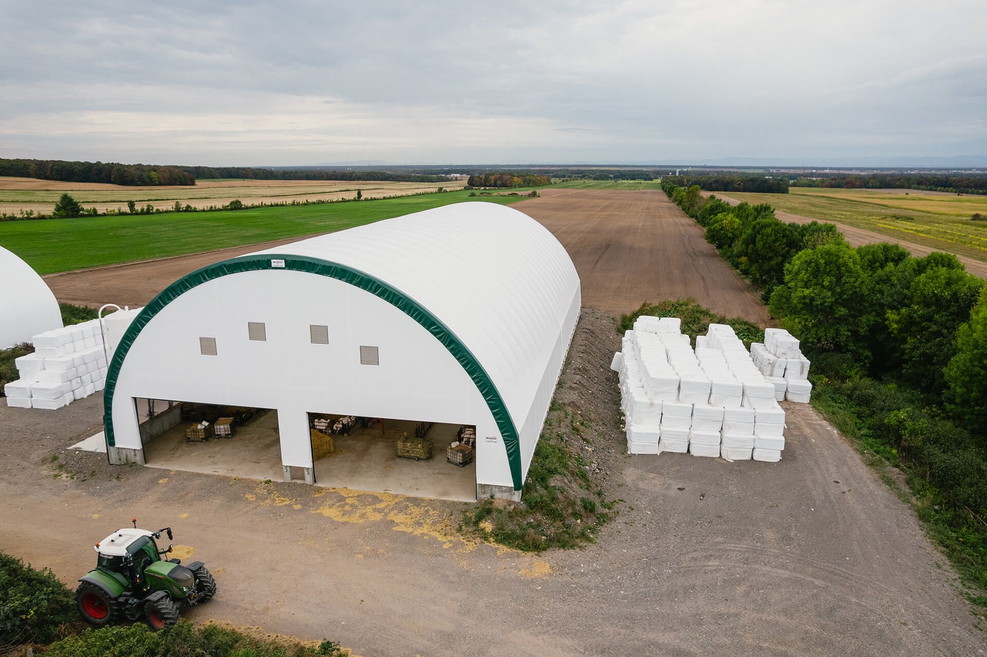 It’s in this context that Caprijol decided to install two Britespan domes on their farm, a choice that perfectly reflects their farming philosophy. In 2022, a first Apex-model dome, measuring 60 x 104 feet, was erected for the storage of 1,500 straw bales. Built on concrete blocks and a gravel base, this first structure offers impressive storage capacity, securing the herd’s annual needs. Impressed by this initial project, they went on to install a second dome, an Atlas model measuring 80 x 144 feet, to house 600 young goats. This structure offers the animals a bright, spacious, and comfortable space, providing them with an optimal quality of life in an environment where animal welfare standards are a top priority. Without costly or complex mechanisms, these facilities perfectly meet the farm’s need for simplicity and low costs. They will transform the daily management of operations while supporting a 30% increase in the company’s annual revenue.