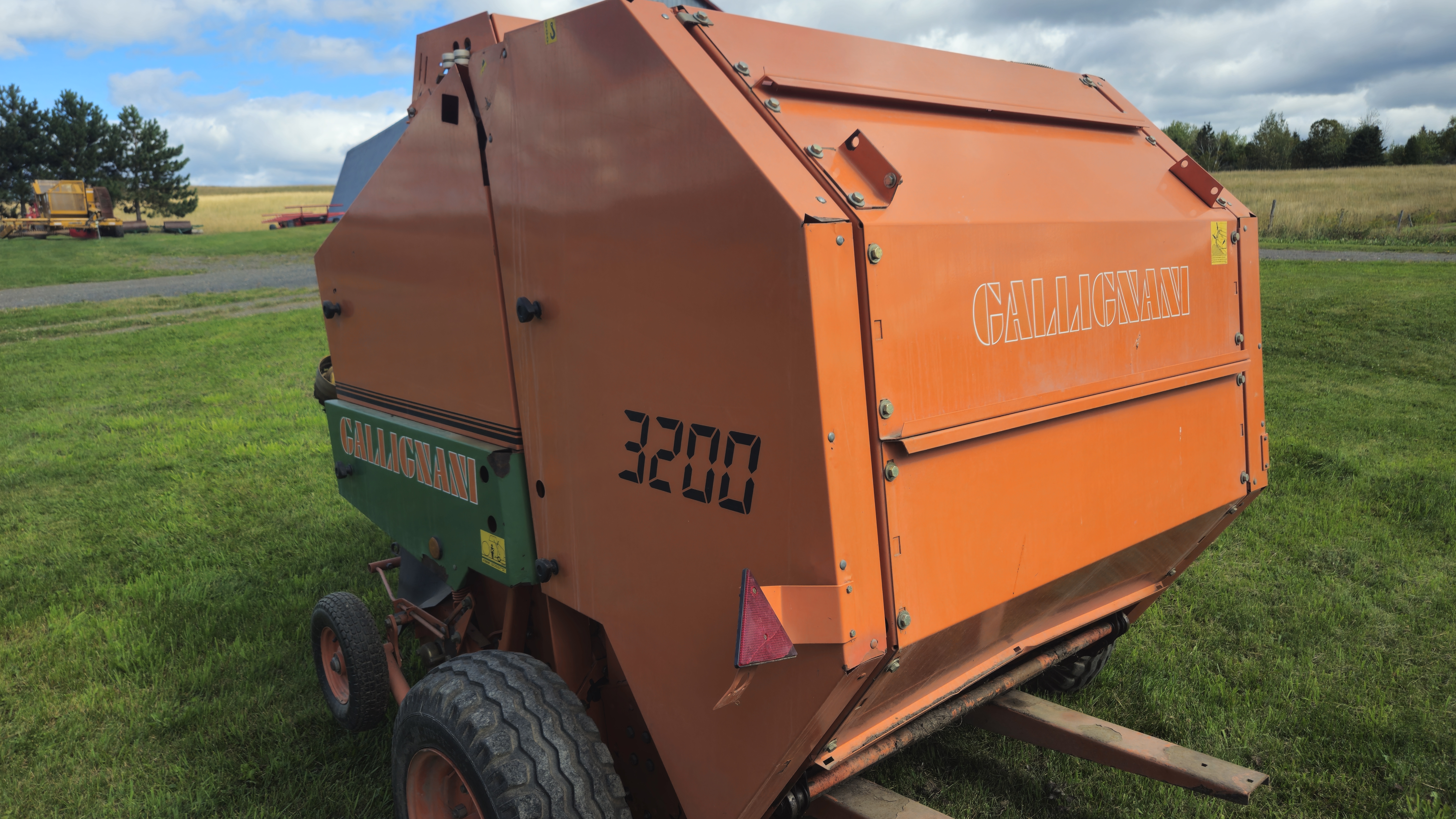 | Informations supplémentaires : Presse à balles rondes Gallignani 3200 Chambre fixe de 48 pouces à chaine Ramasseur standard de 48 pouces Attacheur à corde Dents et garde panier inclus |