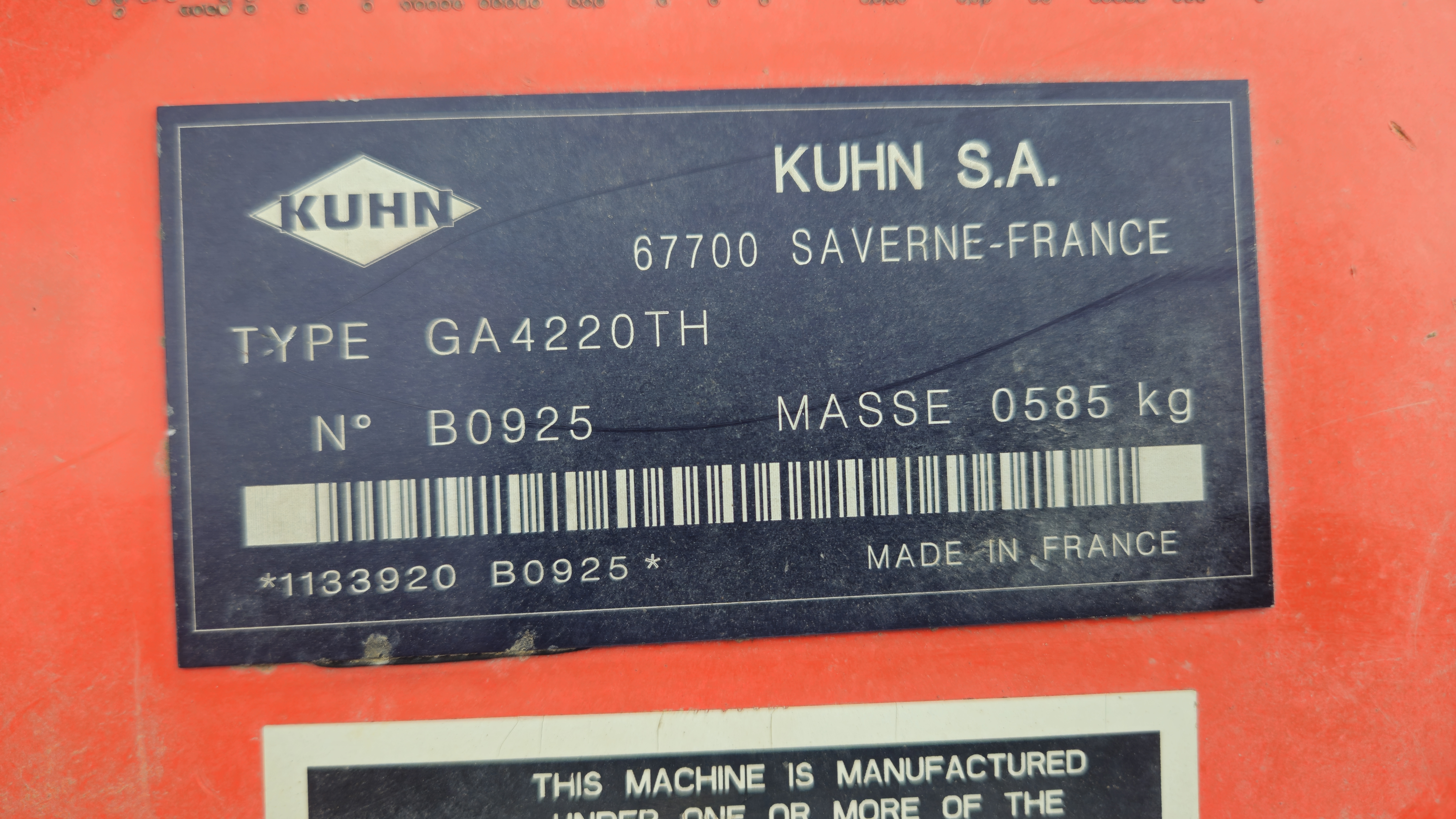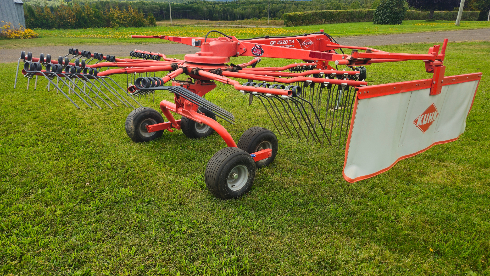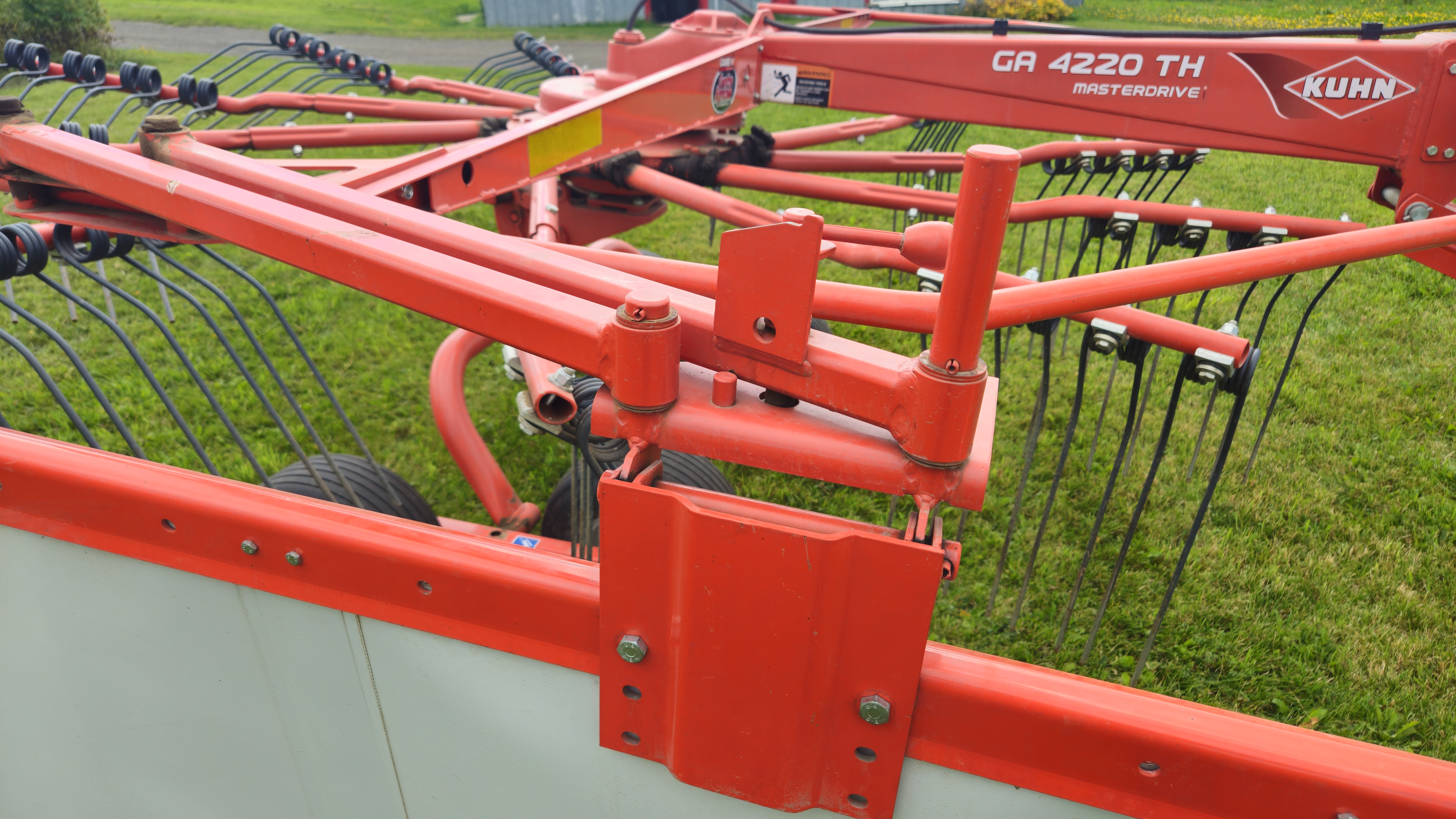 | Informations supplémentaires : Râteau à foin Kuhn GA4220 2017 Largeur de travail de 13 pieds Essieux tandem 11 bras avec 4 dents par bras PTO à joints double Toiles à andains ajustables en plusieurs angles Relevage Hydraulique avec ajustement du timon |