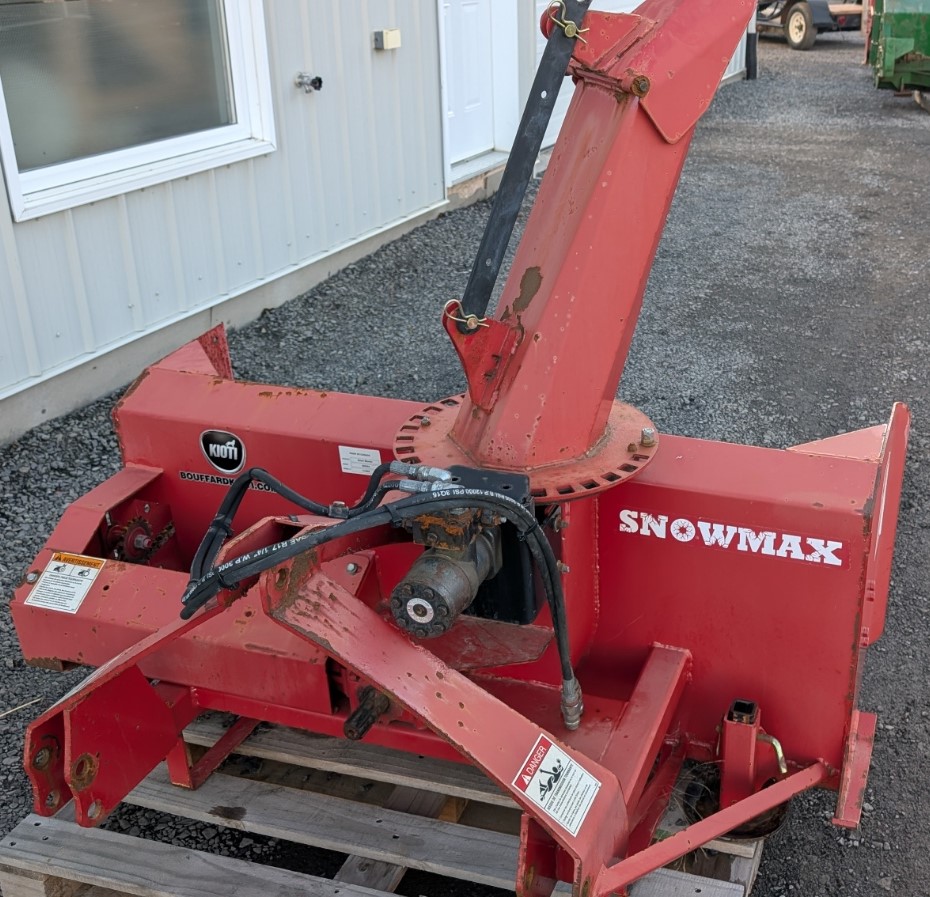 | Informations supplémentaires : Souffleur à neige Snowmax 54 pouces 1 seule vrille Fan de 18 pouces avec 4 palles Chute standard avec rotation par moteur hydraulique Sabot ajustable Hauteur de boite : 21 pouces |