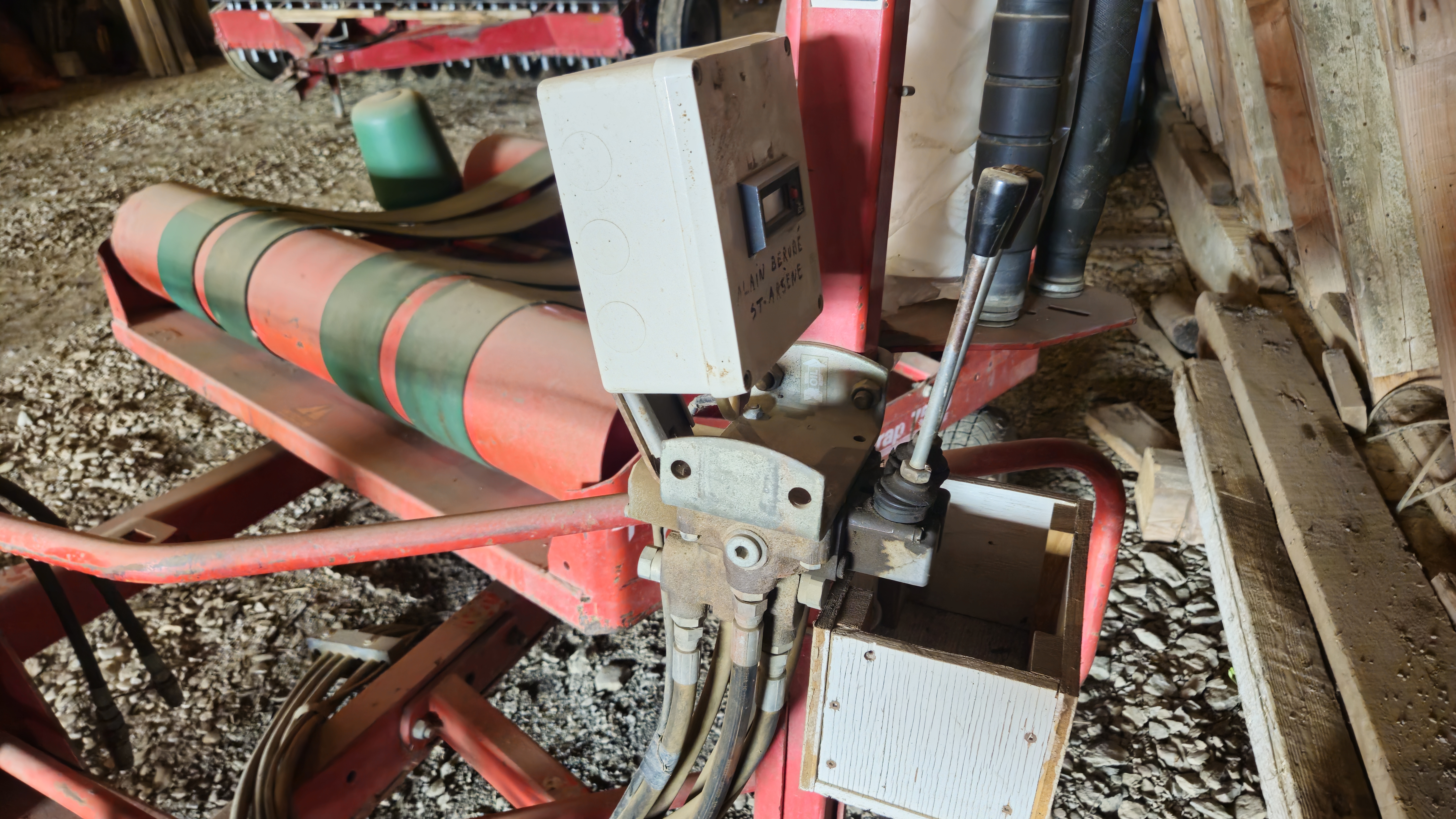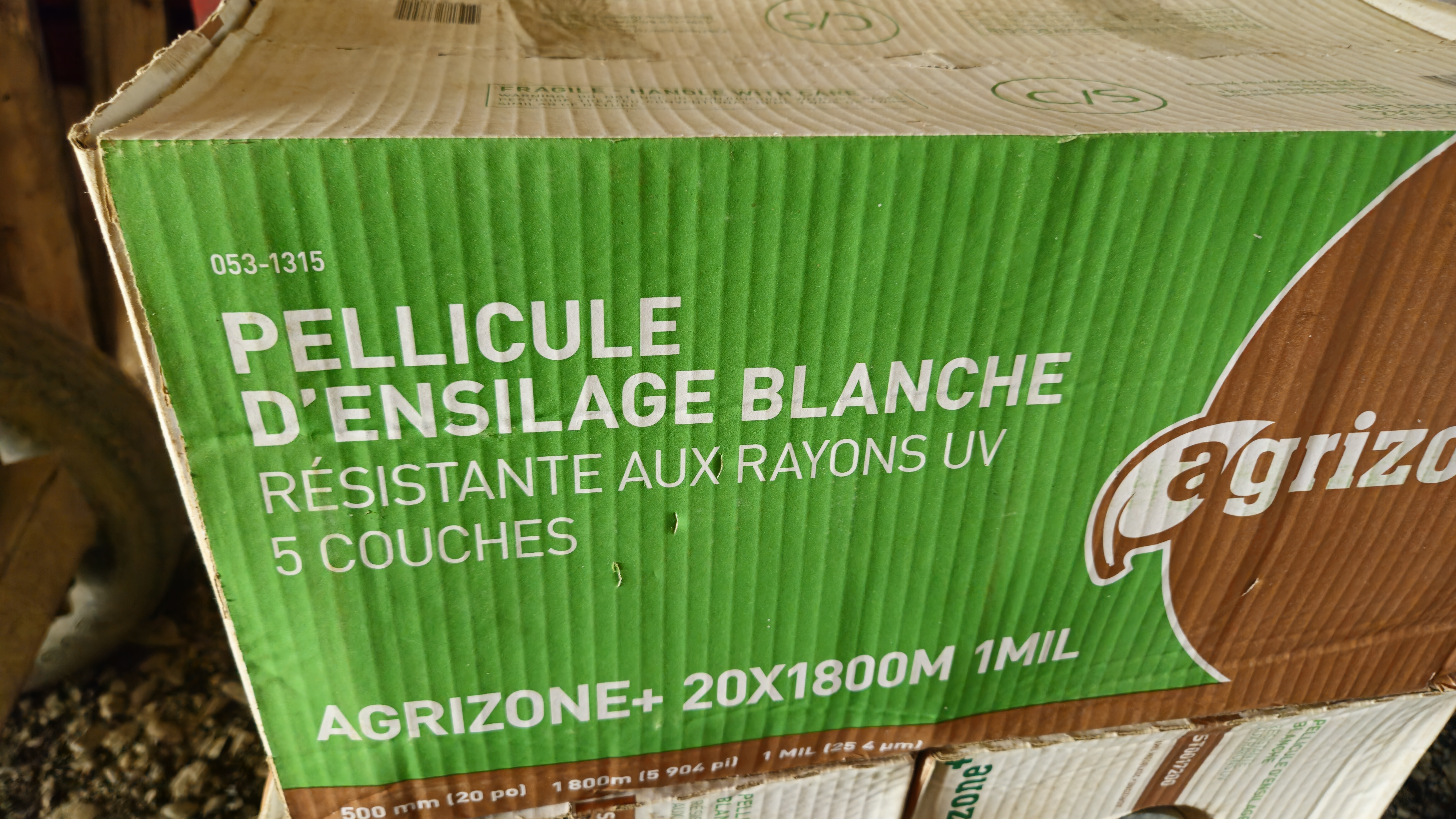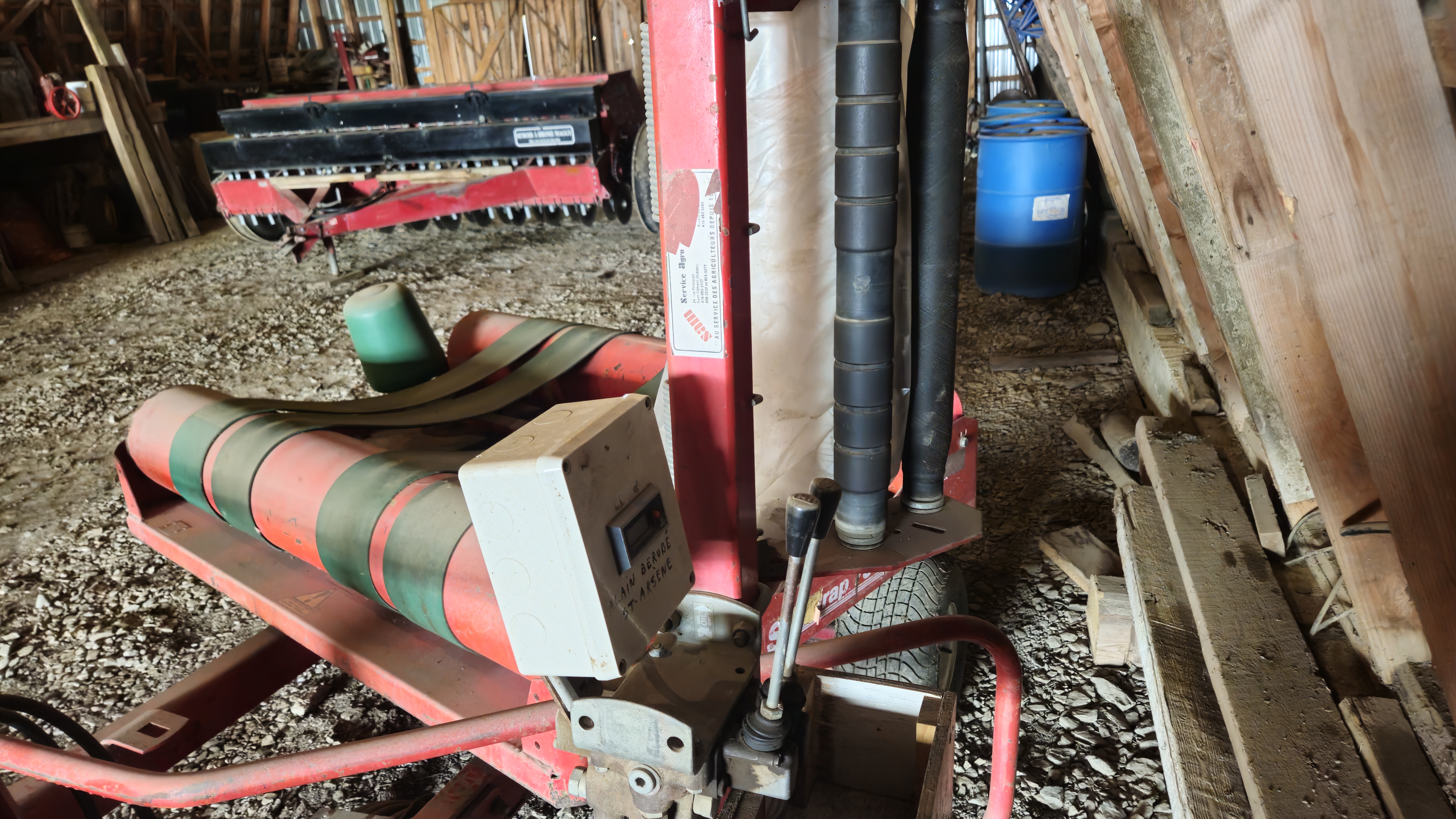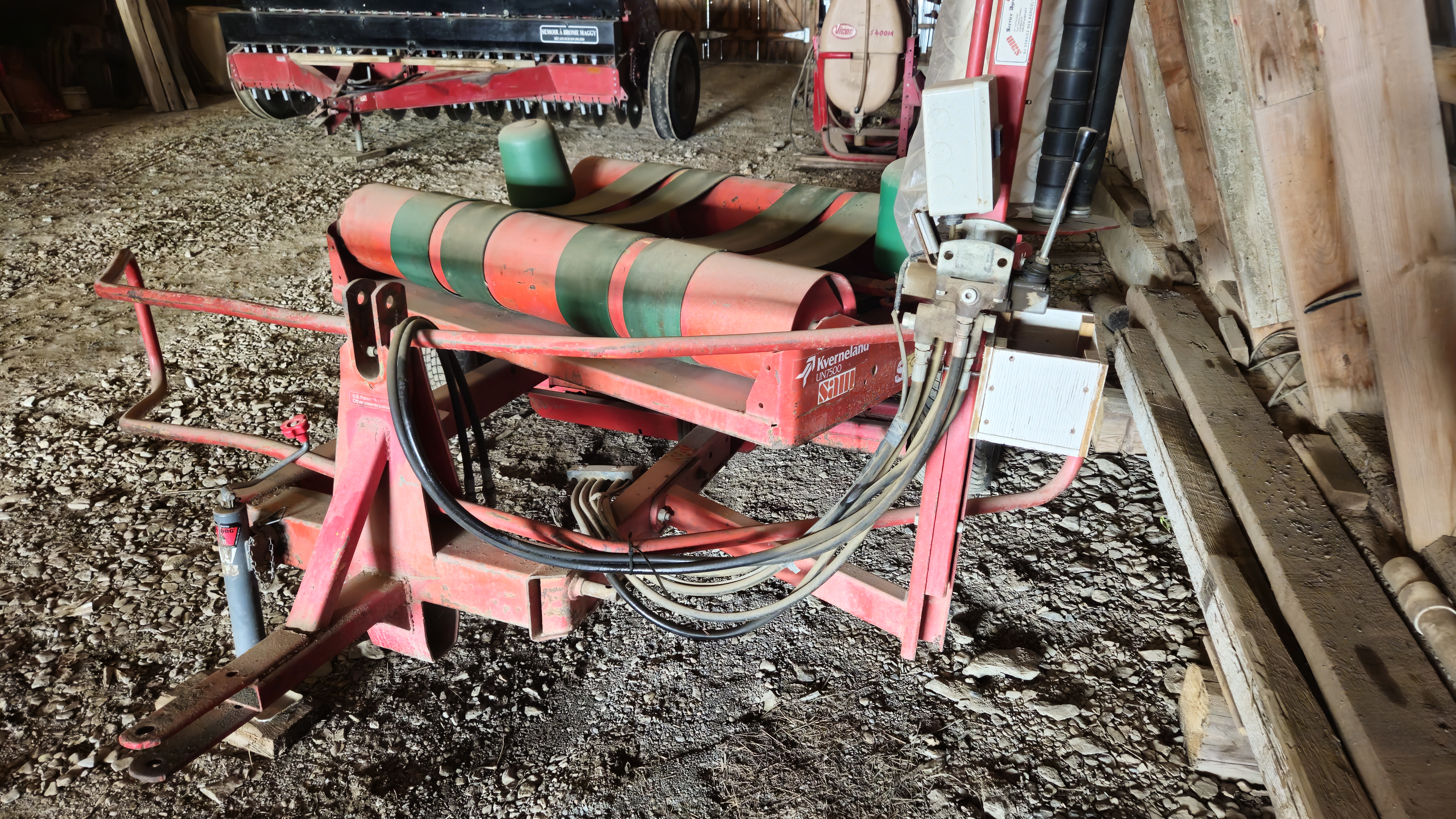 | Informations supplémentaires : Enrobeuse à balles rondes Kverneland UN7500 individuelle usagé Contrôle manuel de l'enrobage Tensionneurs de 20 po Compte tours installé sur chariot de transport Possibilité d'avoir 4 boites de plastique d'enrobage |