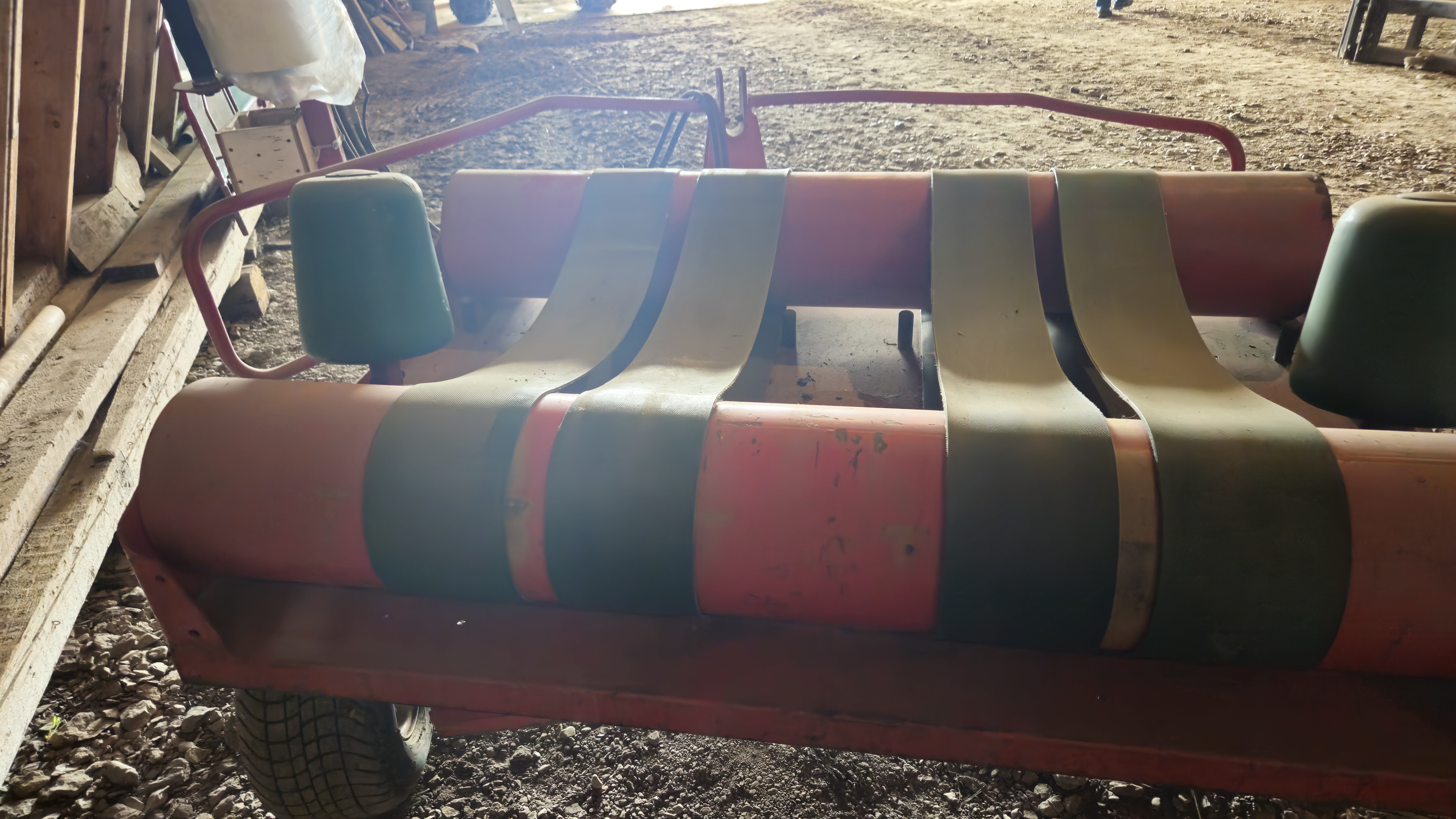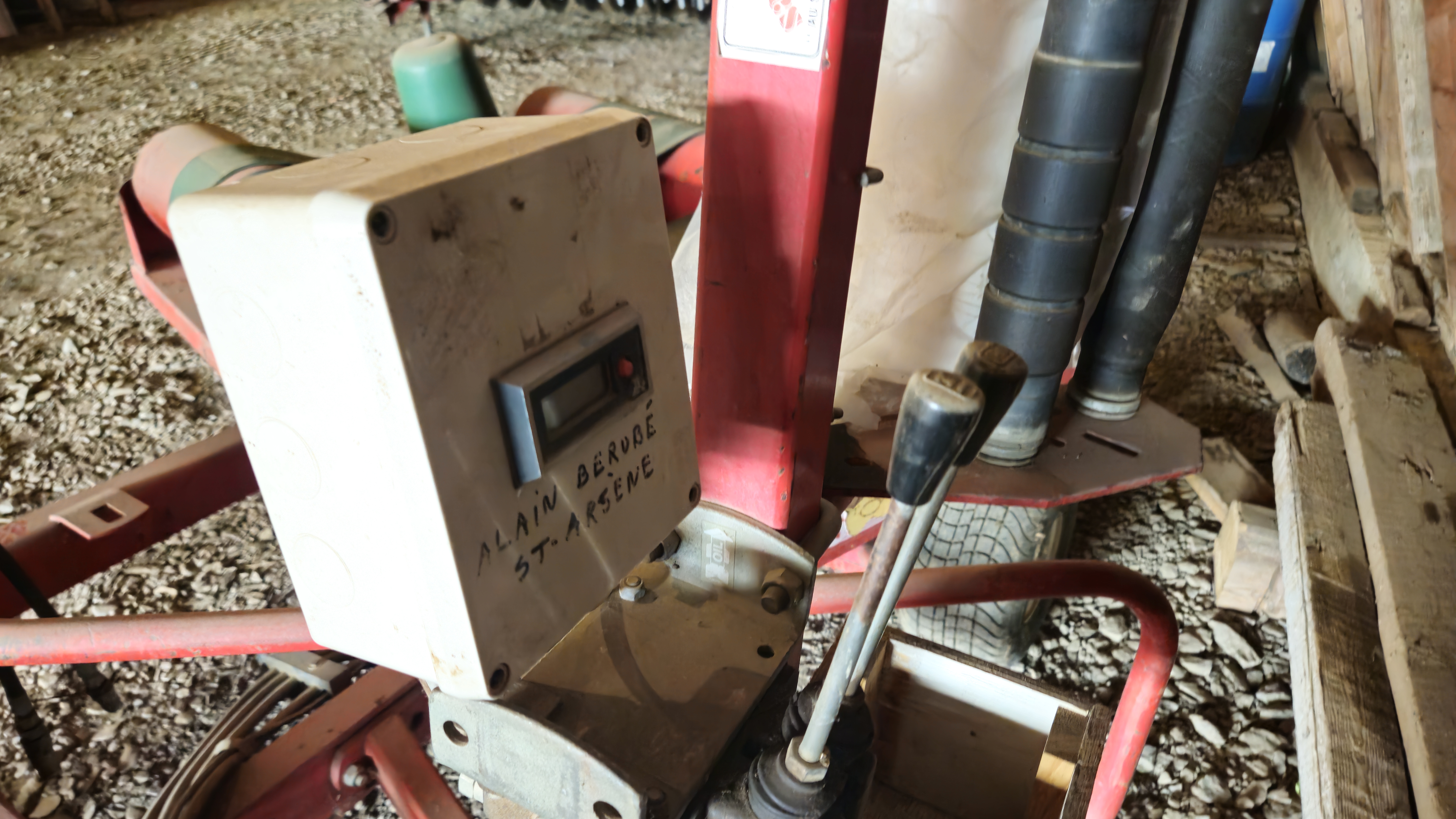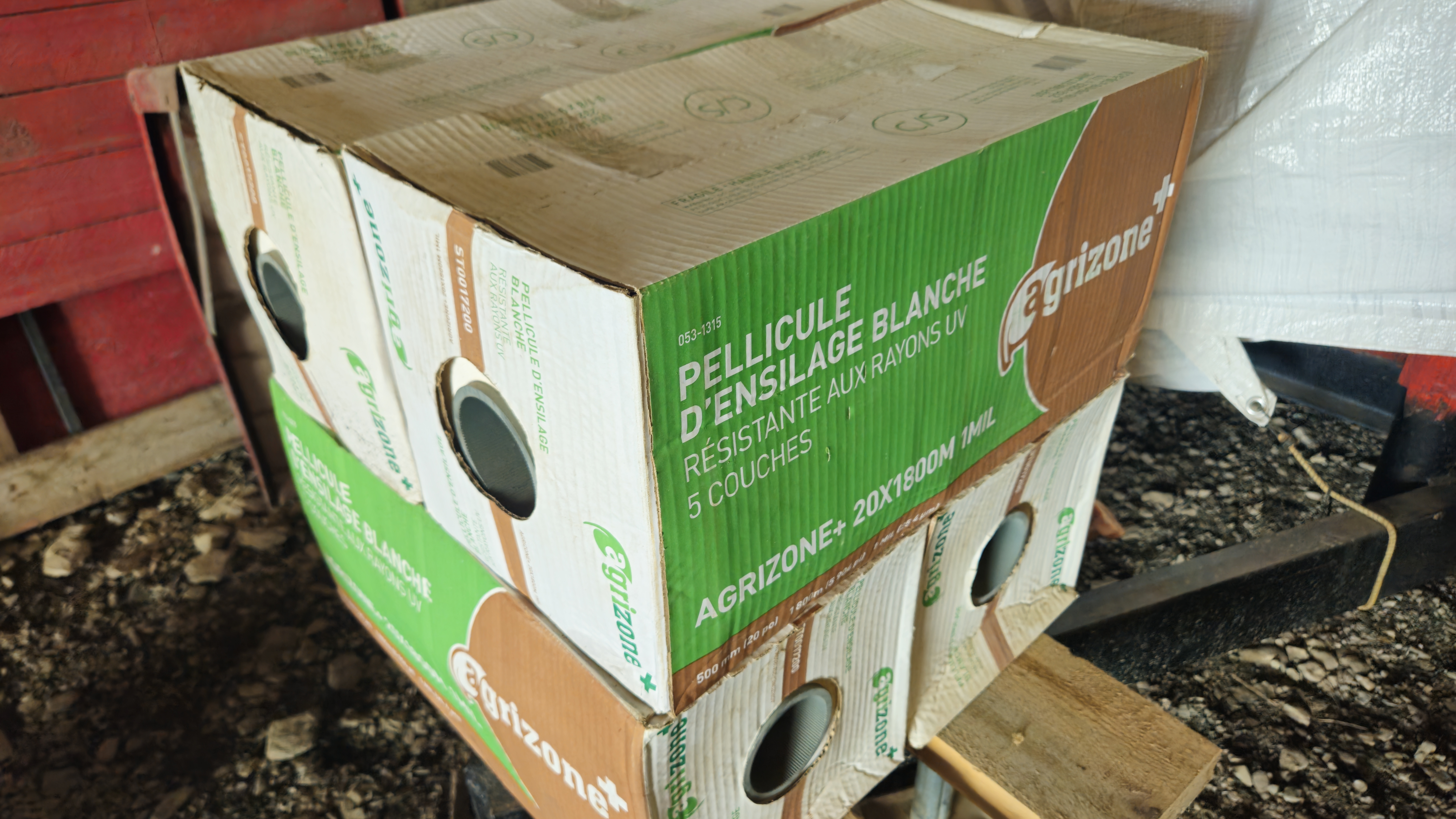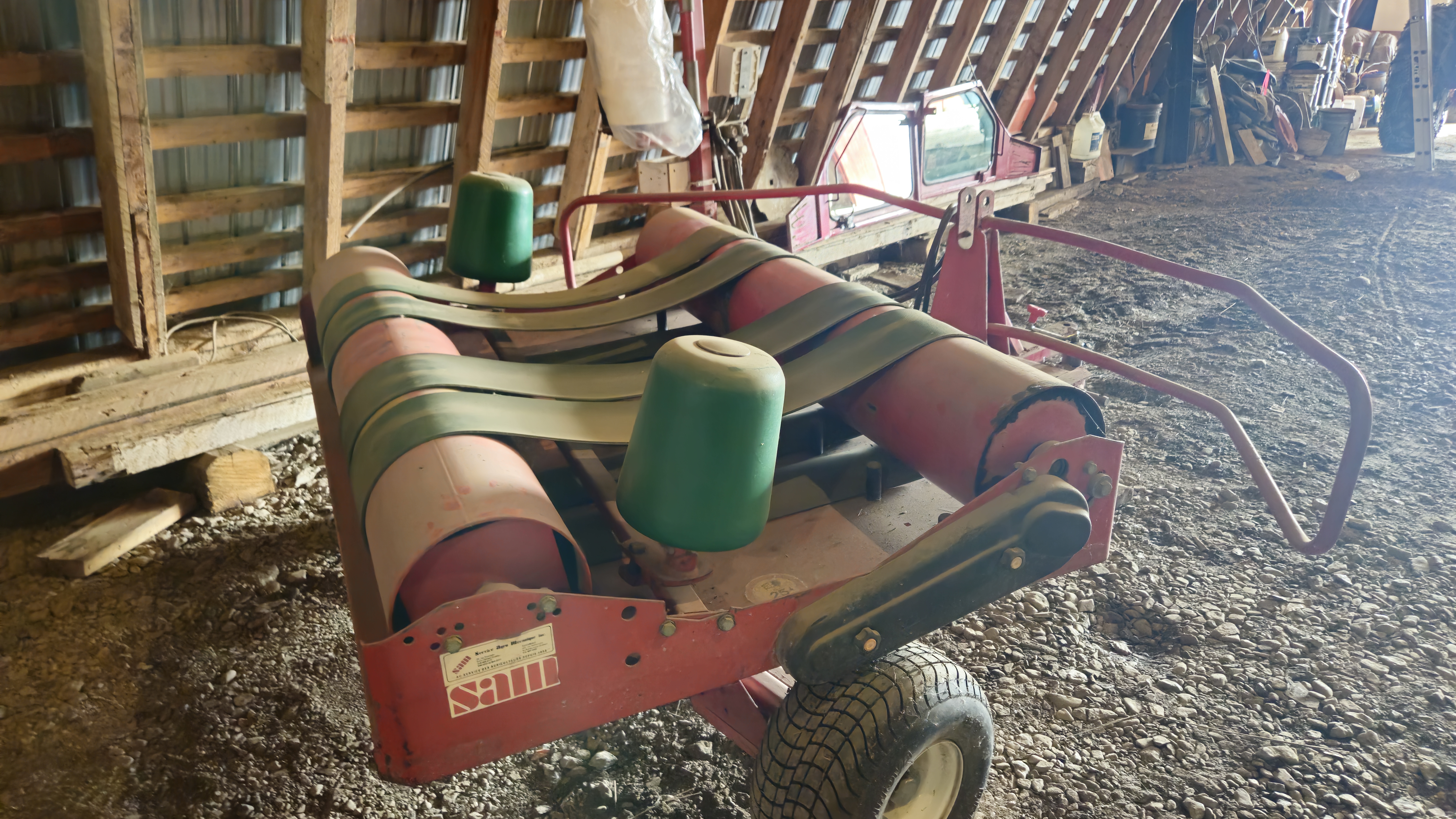 | Informations supplémentaires : Enrobeuse à balles rondes Kverneland UN7500 individuelle usagé Contrôle manuel de l'enrobage Tensionneurs de 20 po Compte tours installé sur chariot de transport Possibilité d'avoir 4 boites de plastique d'enrobage |