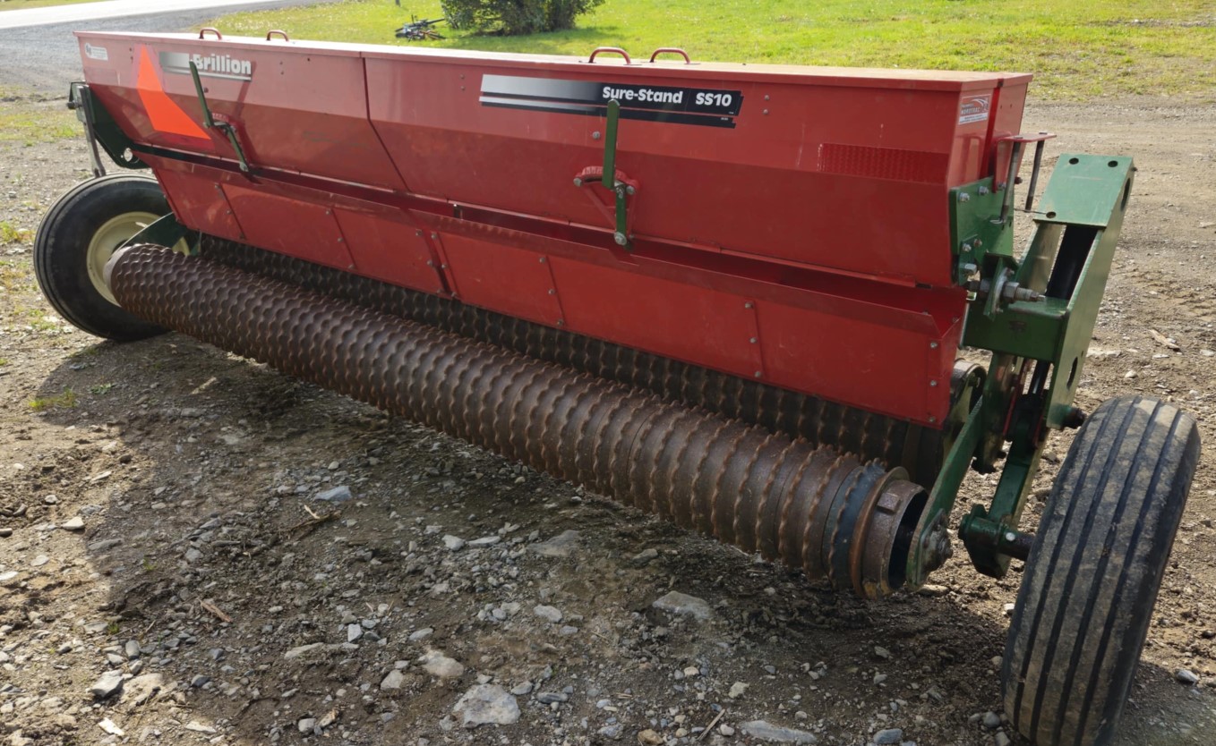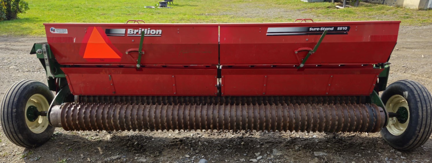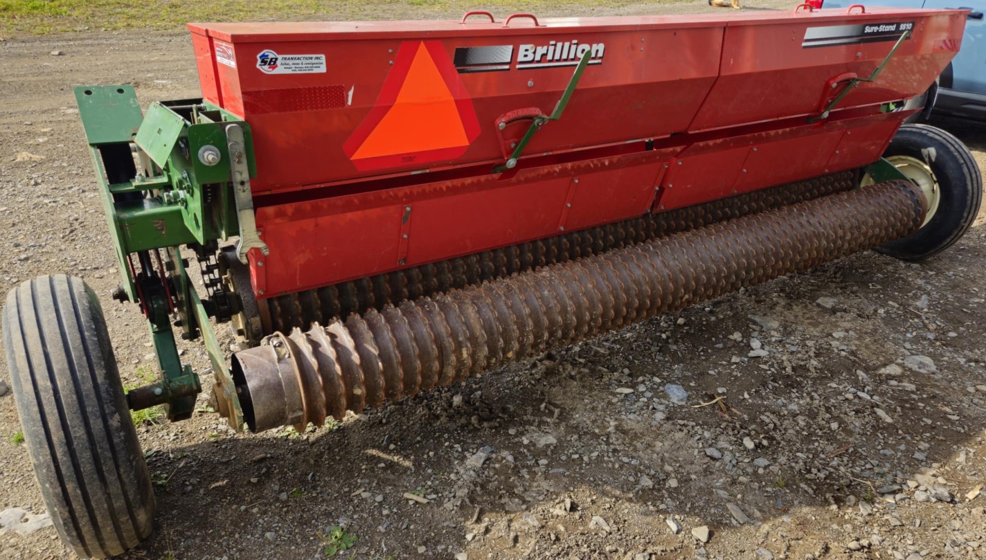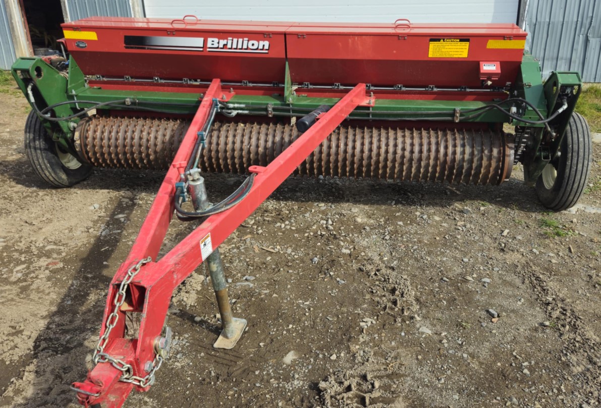 semoir brillion ss10 , largeur de semi de 10 pieds , coffre a brome evec ajitateur et a graine , model trainé avec cylindre de relevage
