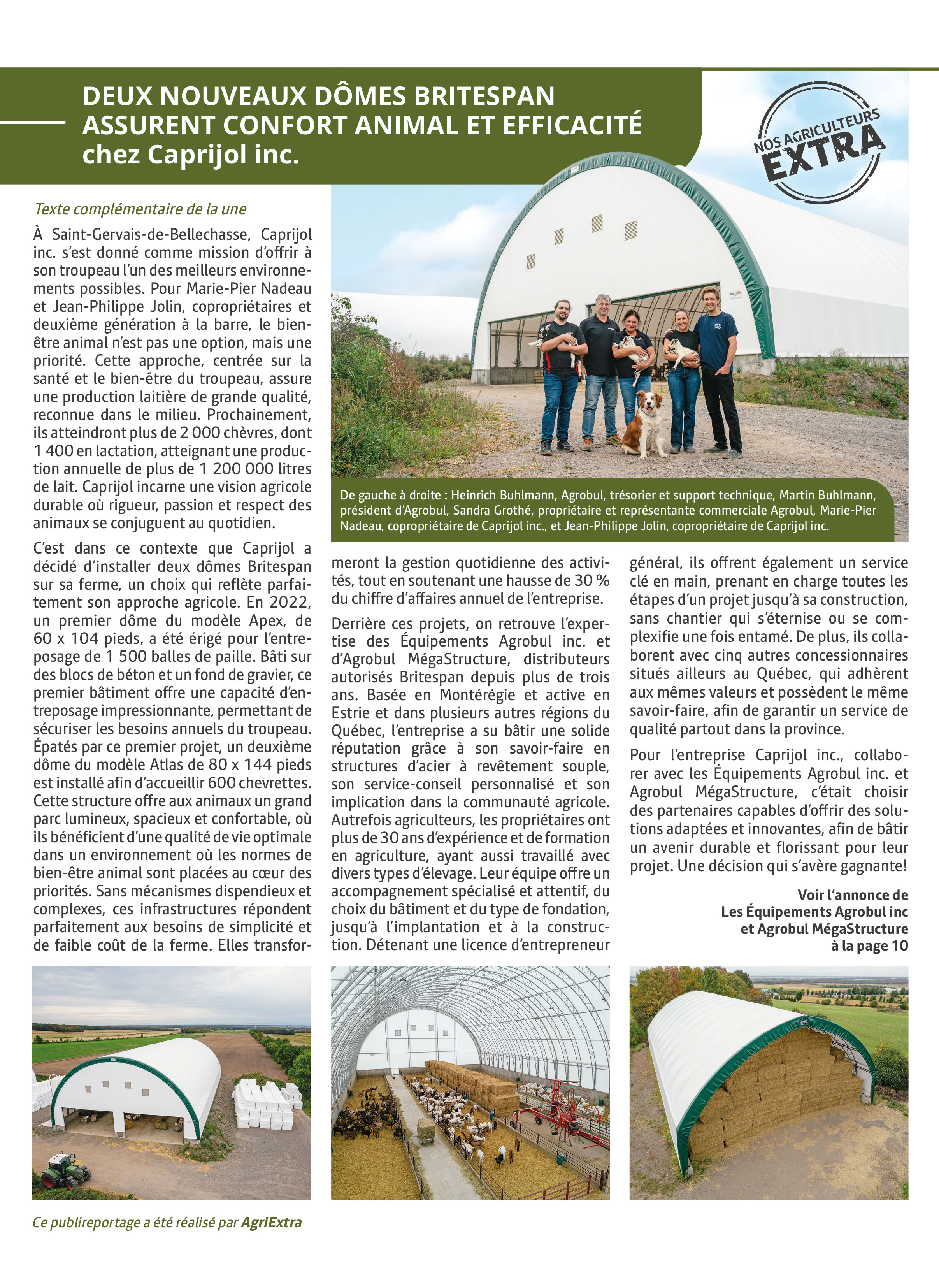 Deux nouveaux dômes Britespan assurent confort animal et efficacité chez Caprijol inc.
